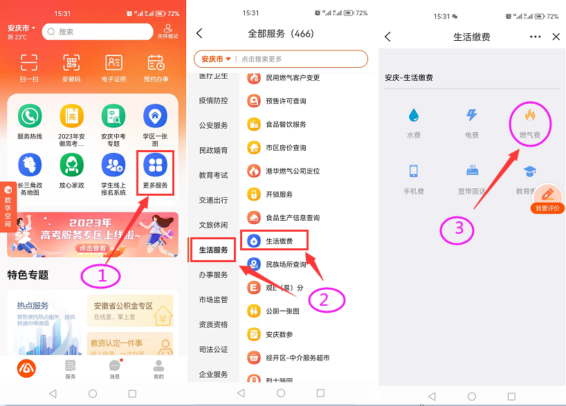 皖事通:安裝并打開皖事通APP,進入“更多服務(wù)”-選擇“生活服務(wù)”-“生活繳費”,點擊“燃氣費繳納”即可繳納燃氣費或者預存氣費。