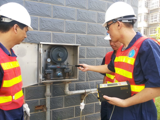 此次應(yīng)急演練模擬在市熱電路某小區(qū),管網(wǎng)巡檢人員進(jìn)行日常巡檢時(shí),發(fā)現(xiàn)該小區(qū)樓棟調(diào)壓器有嚴(yán)重漏氣現(xiàn)象,巡檢人員第一時(shí)間控制住現(xiàn)場(chǎng),拉起警示帶,警示過(guò)往行人與車輛遠(yuǎn)離事故現(xiàn)場(chǎng),嚴(yán)防燃?xì)庑孤┓秶鷥?nèi)有明火產(chǎn)生,同時(shí)按照既定的程序向部門負(fù)責(zé)人報(bào)告。接到報(bào)警后,部門負(fù)責(zé)人以及搶險(xiǎn)班組人員即刻到達(dá)事故現(xiàn)場(chǎng),經(jīng)現(xiàn)場(chǎng)確認(rèn),事故等級(jí)為Ⅱ級(jí),并立即啟動(dòng)事故應(yīng)急預(yù)案。