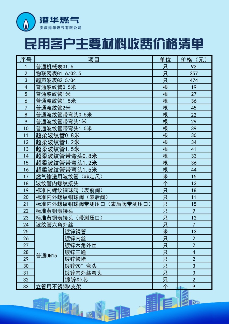 安慶港華燃?xì)庥邢薰臼召M(fèi)項(xiàng)目一覽表(2025)
