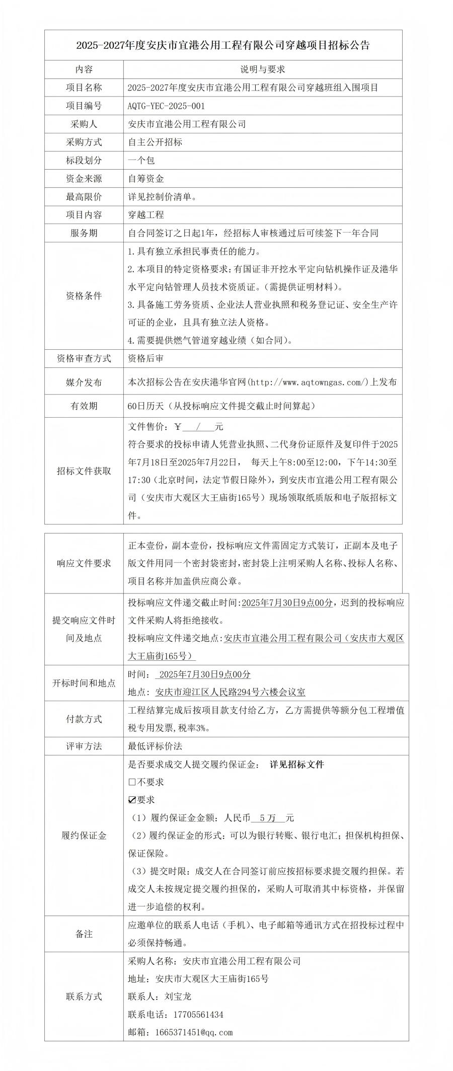 2025-2027年度安慶市宜港公用工程有限公司穿越項(xiàng)目招標(biāo)公告